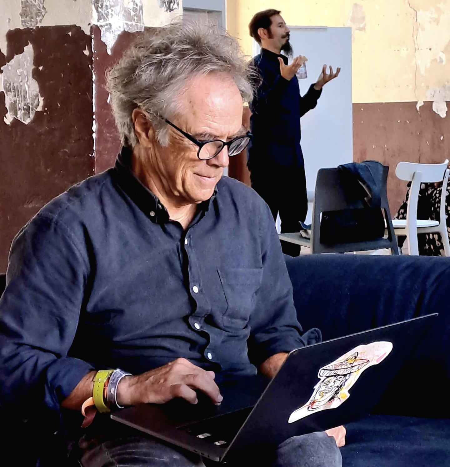 Hace poco más de un año me escribió con algunas preguntas sobre el contexto cultural, comentándome que planeaba venir a Barcelona y nos propusimos por fin concretar la intención de hacer algo juntos. Yo le respondí, le propuse una idea, él me propuso otra, seguimos y desde entonces trabajamos en un pequeño proyecto juntos, que vamos a plasmar en estos días, para publicar dentro de poco. Pero todas nuestras conversaciones empezaron a darnos material digno de compartir con nuestros colegas. Por ese motivo se nos ocurrió, hace apenas tres semanas, hacer este workshop. Durante este corto plazo ambos estamos trabajando para que sea una buena experiencia para todos. Y también para fusionar o “sinergizar” nuestros diferentes perfiles en función de una coherencia».