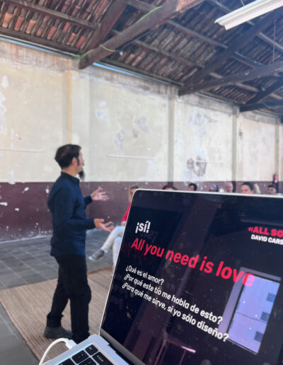 Un taller teórico práctico de tres horas en el que los participantes comprenderán en solo 30 minutos las bases de una comunicación disruptiva, por Felipe Ibáñez que es pionero de estas técnicas, para volcarse en una experiencia plástica y lúdica distendida y relajante, guiada por el influyente David Carson, en la que se producirá una serie de posters deconstructivos, cada uno con una técnica conceptual diferente.